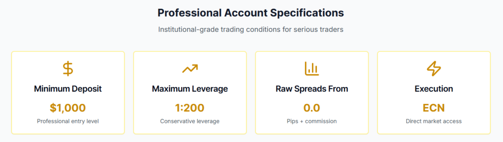 - Raw ECN Spreads: The Professional account offers real 0.0-pip spreads, which are key for profitable scalping.
